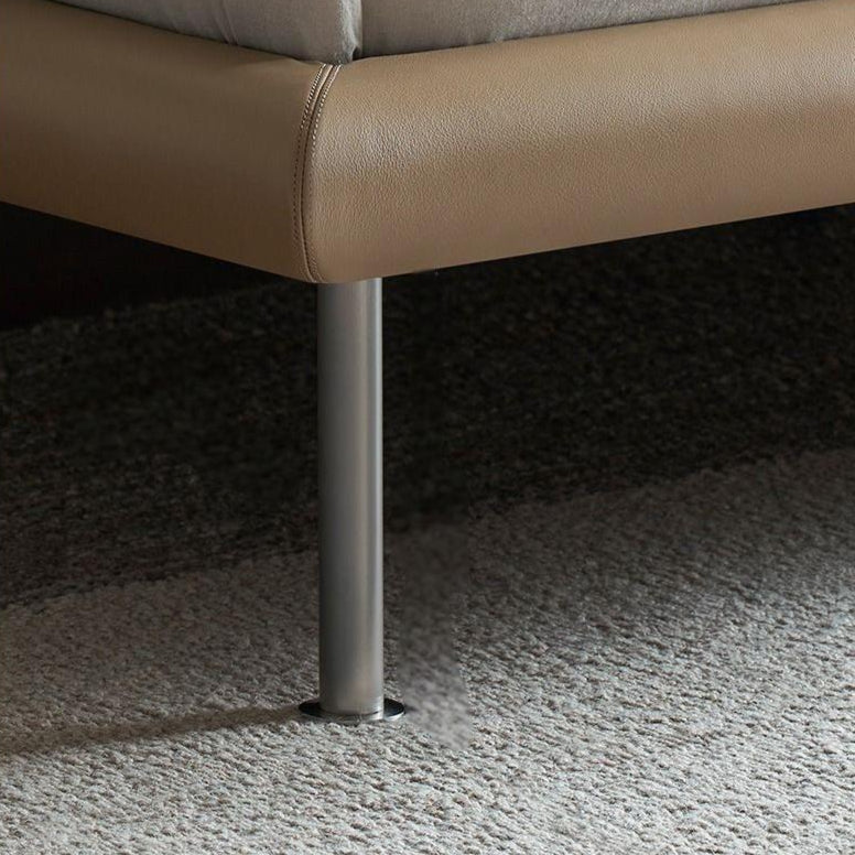 The Choco Swirl Leather Bed combines soft curves and premium materials in a refined, modern design. Its gently arched headboard offers a cozy, sofa-like feel, upholstered in smooth, high-quality leather with fine stitching that reflects expert craftsmanship. High-resilience foam provides long-lasting comfort and support, while the raised legs allow for easy cleaning underneath. Stylish yet practical, it brings a sense of calm, warmth, and quiet luxury to any bedroom.
